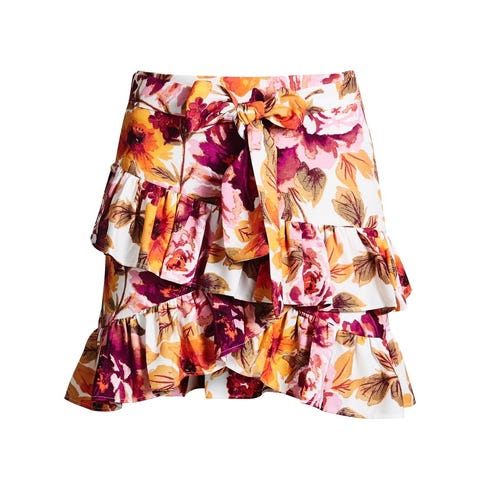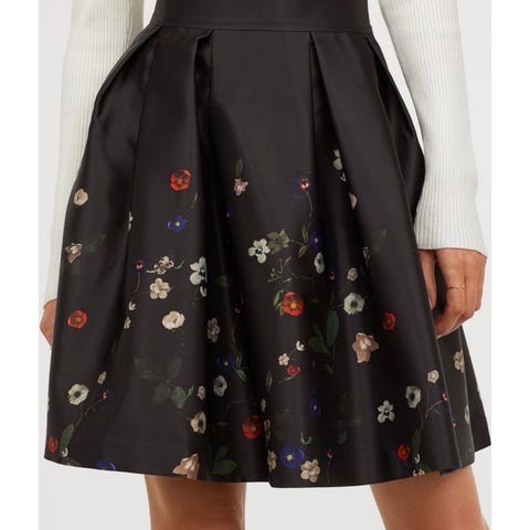 Bildet av skjørtet i sort er for å vise passform. Skjørtet som selges er hvitt med sommerlig motiv av blomster og sommerfugler.