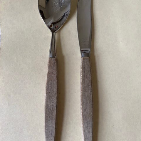 Ett sett stort salatbestikk (29,5 cm) fra Skaugum i svært god stand: Kr. 700,- for settet