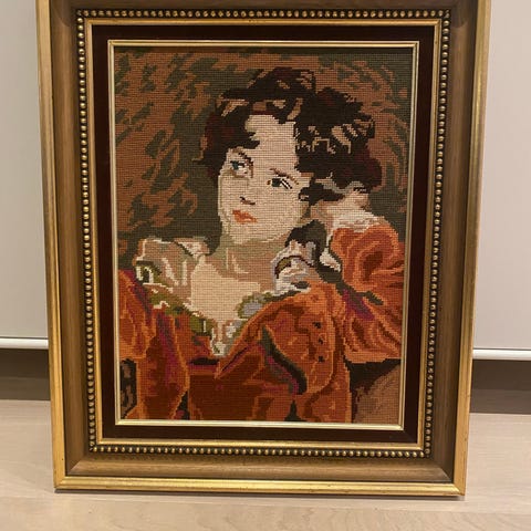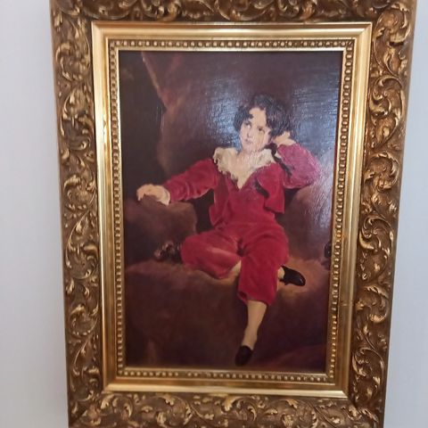Portrettet "The Red Boy" / Master Lambton, brodert og i glass og ramme