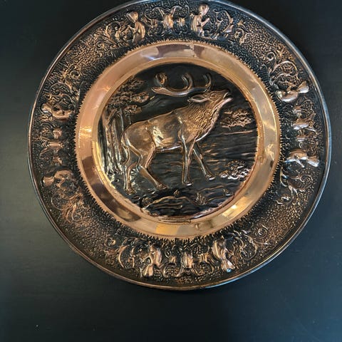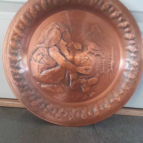 Selger flott kobber tallerken som kan henges på vegg. Kjøpt for ca 35 år siden. Alder ukjent. Kan sendes med fiks ferdig.