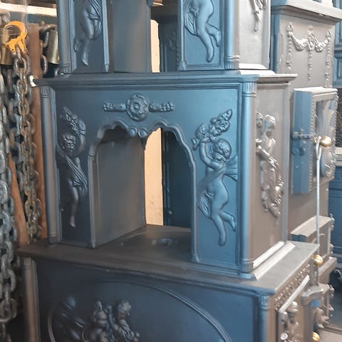 Selger en Eidsfos Verk nr. 75 som har stått på hytta siden 1940. Ovnen er så vidt jeg vet urørt og passer godt til den som ønsker seg en urestaurert/autentisk ovn. Eller om kjøper ønsker å pusse den opp på sin måte. Ovnen bør hentes for å unngå transportskade.