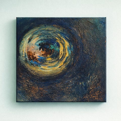 Maleriet er malt med palett-kniv og det er malt med akrylmaling på bomulls-lerret av god kvalitet.
