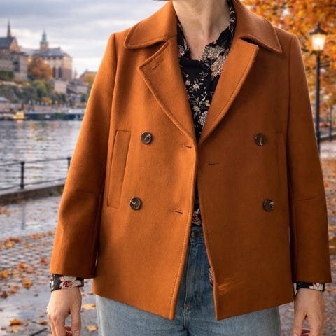 Elegant og tilnærmet ubrukt brukt jakke i str M i 85 % ull fra italienske MET selges. Brosje medfølger, men kan tas av.