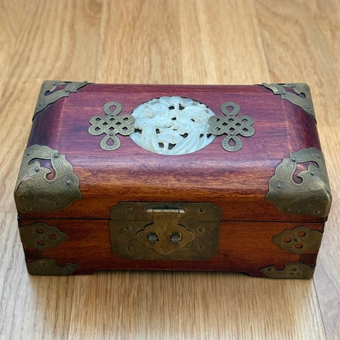 Pent brukt Retro skattekiste vintage tre oppbevaringsboks antikk stil smykker arrangør for garderobeskap smykker boks pyntegjenstandespenne.