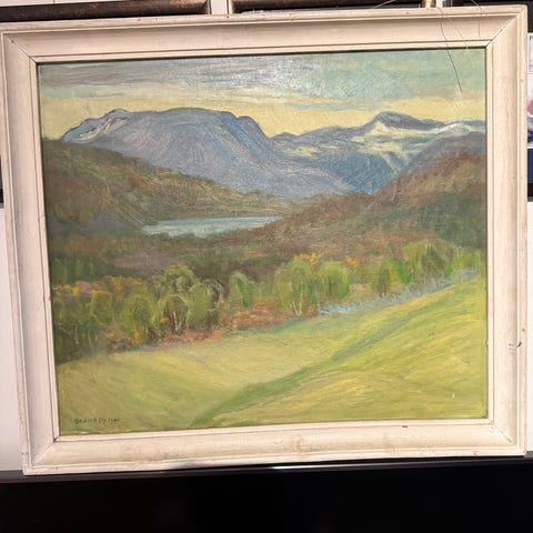Mongolsk maleri selges. Det er et stort bilde med Mongolsk narrative hendelser og symbolikk. Bildet er laget fra grunnen av og spent opp selv. Størrelse 200 gager 120 cm