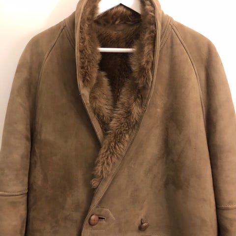 Kamelhårsfrakk (100%) fra Eres. Herre, størrelse 50 (cirka medium). Noe slitasje nederst i ermene (se bilde), men ellers pent brukt. Kan sendes eller hentes sentralt i Oslo.