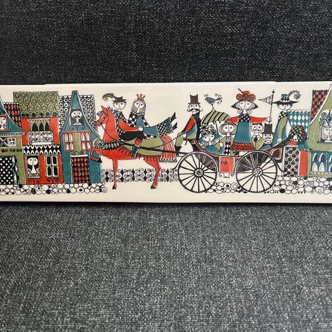 STAVANGER FLINT 1954. Et riktig flott og klassisk Stavangerflint fat, med rokokko renessanse signert motiv ( Fragonard motiv-tegning ). Fatet er helt og pent, men det har krakelering. Fin krakelering etter 70 år, men dekorativt nok! Kvalitet varer. Se bilde for mål.