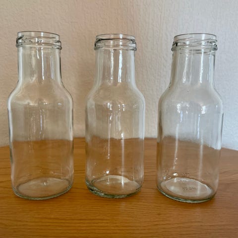 6 melke/ fløteflasker i forskjellige størrelser.