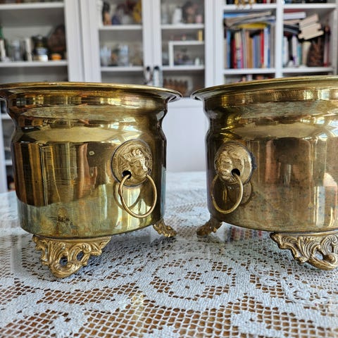 Søtt lite sett med gravert mønster og stempel under. Tinn viktoriansk fra 1800-tallet.