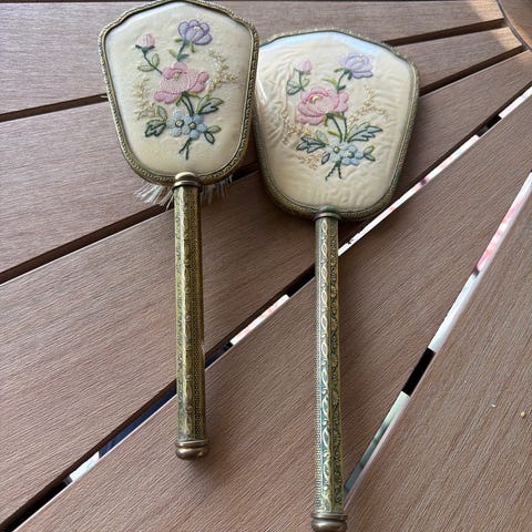 Gammel hårbørste m/broderi - Retro