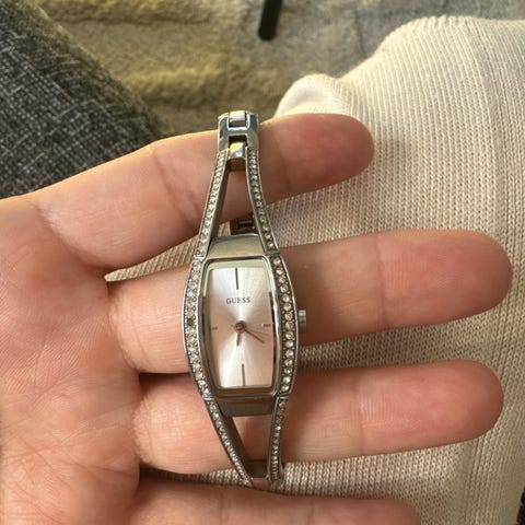 Selger en brukt klokke fra Guess. Mangler to stener rundt urskiven (se bilde).