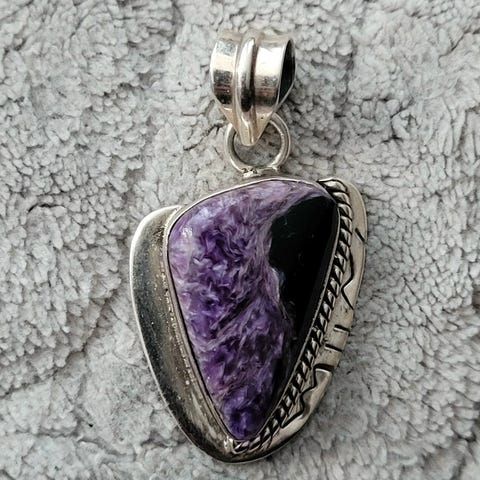 Nydelig anheng i sølv 925 med lillafarget Agat. Uten kjede.