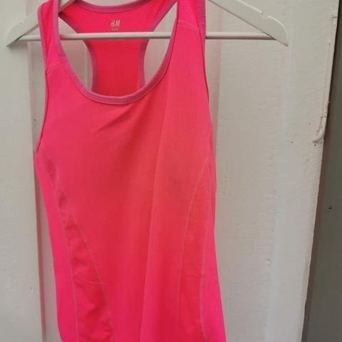 Klassisk treningstopp i rosa. Toppen er pent brukt, og er størrelse S. Materiale: 100% polyester. Jeg sender stort sett alltid første virkedag etter mottatt penger for frakt :)