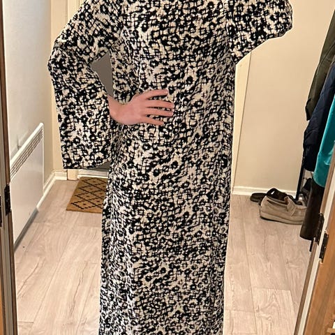 Lekker maxikjole i geometrisk motiv. Kjolen er kun brukt en gang, og er størrelse S, men oppleves som litt stor i størrelsen. Jeg sender stort sett alltid første virkedag etter mottatt penger for frakt :)