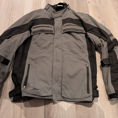 Jofama MC-jakke med beskyttelse på skuldre, albue og rygg, selges fordelaktig. Jakken er brukt noen få ganger og fremstår som svært hel og pen. Avtakbart innerfór. Selges kr 500/bud.