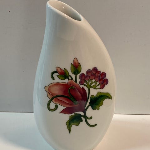 Søt liten vase til hvitveis eller hestehov. Fyrstikkesken viser størrelsen.