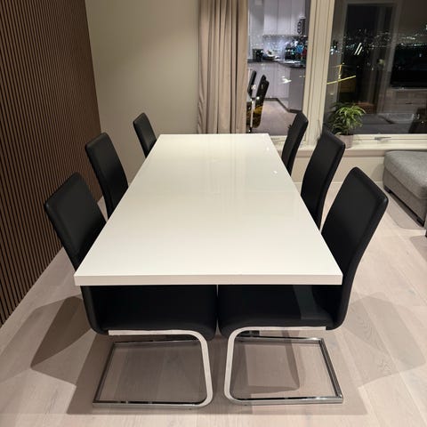 Stoler selges også... høyglans hvite. 1000,- for 4 stykk