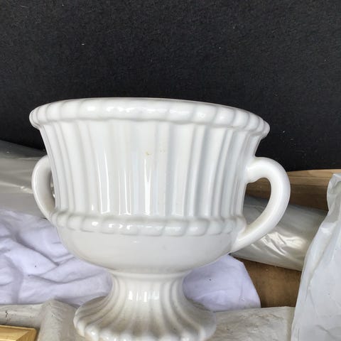 Høyde 13.5 cm. Åpning oppe 9cm. Kjøpt på 1970-tallet i Oslo. Lite brukt til blomster. Har 3 stk. Like. Selges enkeltvis for kr 125 pr stk. Noen merker i glasuren.. Kjøper betaler porto.