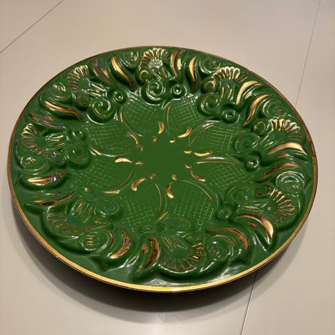 Grønn karaffel med 10 glass.
