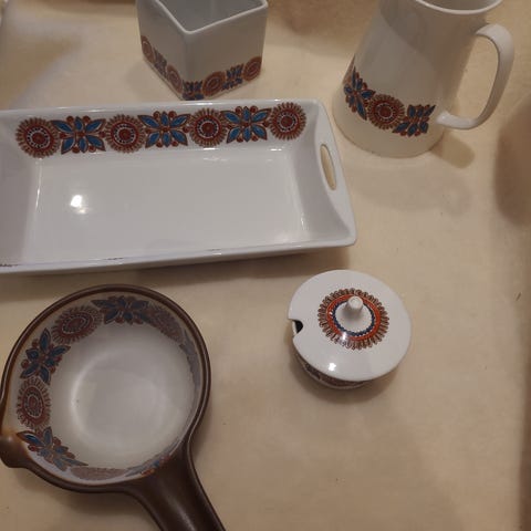 Lot med serveringsfat og kjele med lokk i design Astrid fra Figgjo