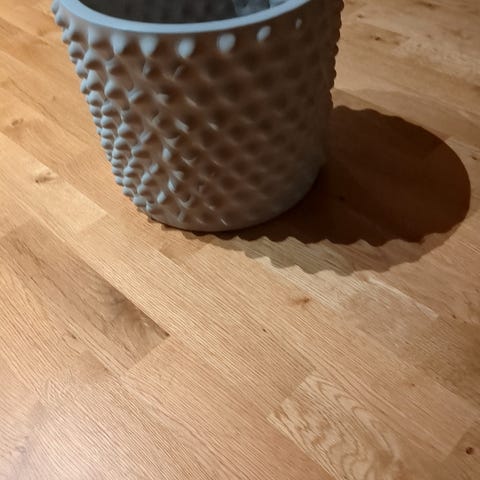 Denne har vært brukt som blomsterpotte. Der er merker som jeg ikke har (klart) å pusse bort. Selges derfor som i den finish som den har. Ingen andre skader, solide håndtak. Stor. Se mål på bilde. Kan sendes for 69kr PostNord sporbar pakke, eller bruk fiks ferdig