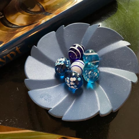 Liten krukke: ca. 9,5 cm x 5 (høyde) cm