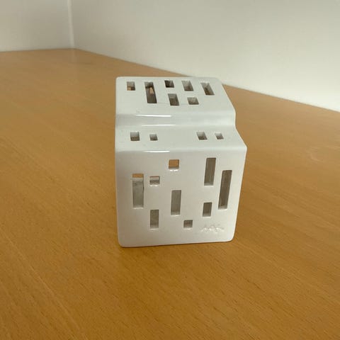 Lysestake type Brick fra Northern Lighting. Pulverlakkert stål, hvit. Mål 8x8x Høyde 5 cm.