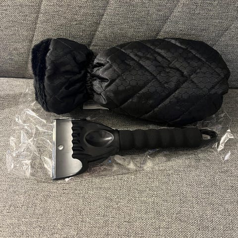 Ubrukte, hendige isskraper med både kost og nal. 36 cm lange, i hardplast. 40,- pr stk.