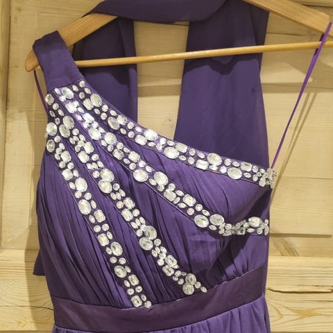 Fiolett fotsid selskapskjole fra Vera Mont, France