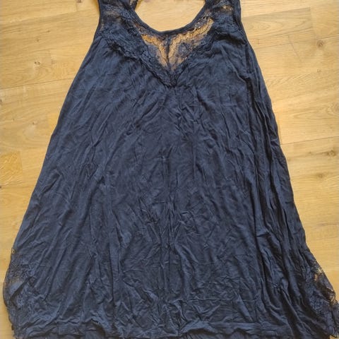 Selger en søt kjole i mørkeblå farge med detaljer med paljetter. Kjøpt i USA på Macy's i New York City (verdens største butikk). Størrelse L.