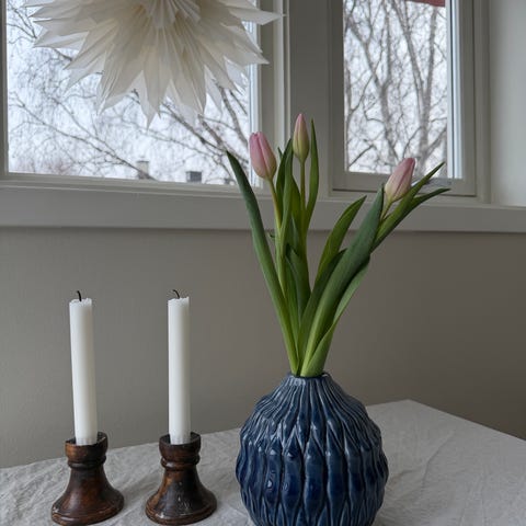 Innvendig ø:8cm. H:12cm. Keramikk.