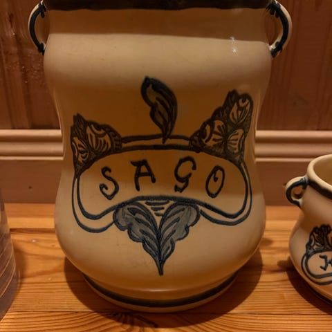 Art deco motiv ~krukke for sago gryn ~ gammel og i god stand!