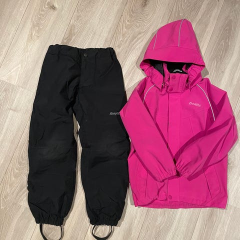Tynn jakke fra Bergans i nydelig materiale. Synes disse er små i størrelse, så mulig mer enn str 122. Veldig kjekk å ha i sekken på tur sommerhalvåret da den tar liten plass.