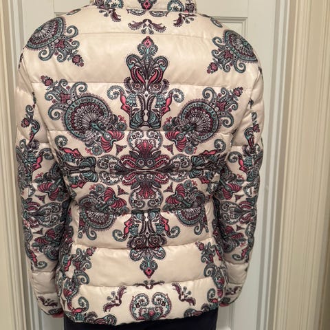 Veldig flott jakke fra Cream. Lite brukt, fint snitt, farger og mønster.. mørk blå og dyp rød. Denne var en del av en prøvekoleksjon da den ble kjøpt. Veldig spesiell og fin. Har aldri truffet noen med make.