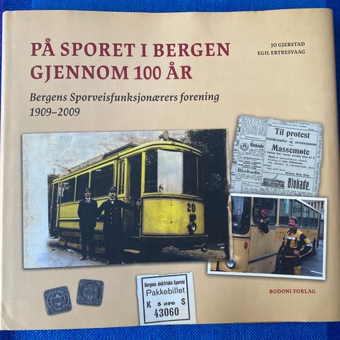 Bergens Sporveisfunksjonærers forening 1909-2009.. Bodoni Forlag. Jo Gjerstad, Egil Ertresvaag.. Boken i flott stand, med smussomslag. 159 sider