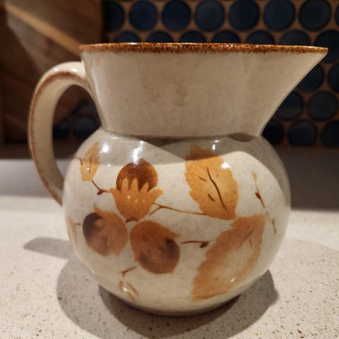 Vintage mugge/sausenebb i herlige retro-farger brun og oransje.