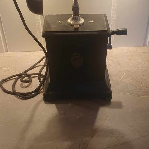 Dette er en uvanlig telefon fra 1960 tallet, man hadde en egen ledning som man kunne høre hva som ble sakt. Under står 11ab 22-43 televerke 46-73 ELETRISK Betaling med vipps. KAN SENDES ! ( ikke med fiks ferdig )