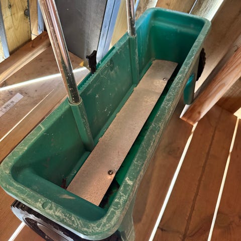 Stor spredervogn for sand, grus, frø og gjødsel. Vognen rommer hele 20 liter og kan derfor enkelt spre grus, gressfrø eller korngjødsel over store flater uten at du hele tiden må fylle på.