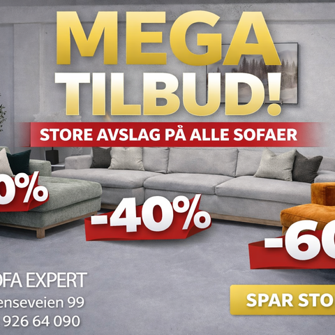 Produktbildet i annonsen er kun for å illustrere at vi har et stort utvalg sofaer og ikke nødvendigvis hva vi har tilgjengelig i butikken til enhver tid. Besøk gjerne vår nettbutikk for å se oppdatert utvalg.