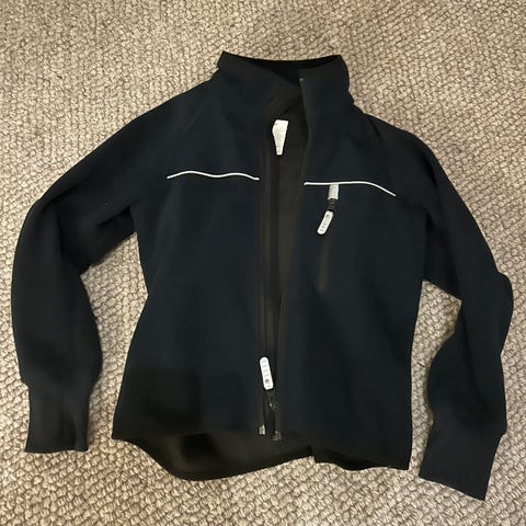 Super stilig sort (lyset på bildene lyver) hettegenser fra Polarn o Pyret str 146/152 brukt to ganger pga glemt på loftet. Hetten kan kneppes av. Skikkelig kul statement genser med mange flotte detaljer som glidelåser og trykknapper. Perfekt gave!