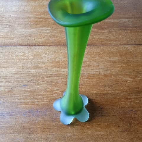 Sett bestående av mugge/vase og skål i grønt pressglass.