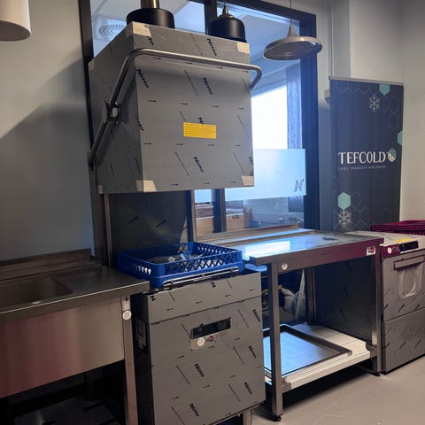 -Oppvaskbenk, Skap, Arbeidsbenk, GN kantiner, vegg hylle, sveiset, grillbenk, stativ, ventilasjon, avtrekkshette, damphette, bokshette, spillbakke, forspyledusj, utslagsvask, veggmontert, benkmonter, innbenk, utbenk, kum, bestikkkurv, vegghengt, sil, såpepumpe, skyllepumpe, cooktek ladestasjon, matbag, veggskap, askebeger, avlastningstopp, flyttetralle, konsoll, plate, søppelbøtte, søppelstativ, veggfeste, veggskinne, filter, deleskinne, bakketralle, baketralle, pakkemaskin, avfallsbeholder, avløpsrist, drikkestasjon, ventestasjon, overskap, arbeidsskap, skyvedør, avlastningsbord, avlastningsbenk,