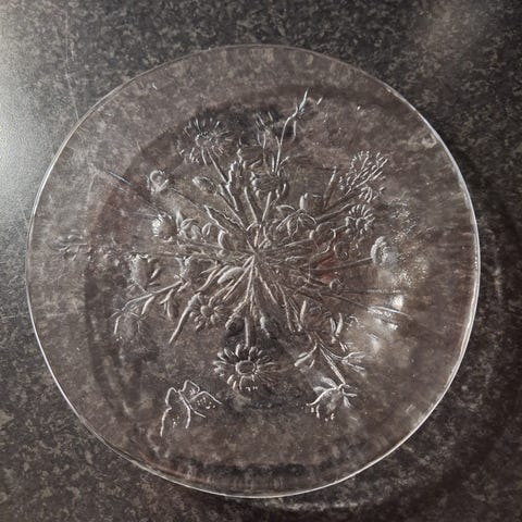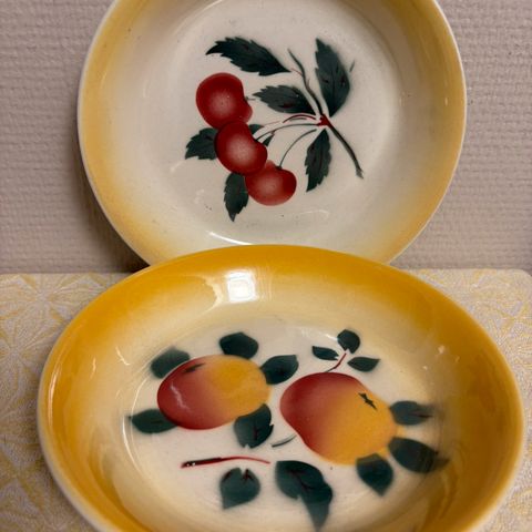 5 stk pent brukte frukttallerkener med fruktmotiv.