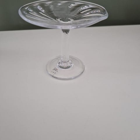 Pent brukt fat på stett, med blomstermotiv