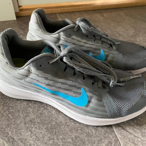 Joggesko pent brukt av ett barn i noen måneder. Nyvasket. En liten skade i stoffet (se bilde), ubetydelig for bruken. Masse sko for pengene, nypris var 799, selges for 100 kr.