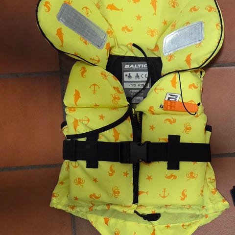 I god stand. Litt bleket i fargen, men ellers fin. Kjøpt brukt. Har selv ikke brukt denne, da det ikke ble noen båtturer i fjor. Nå er den for liten..