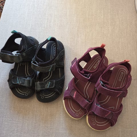 Sandalene brukt i sommer i fjor. Mye bruk igjen. Veldig fine og gode sandaler å ha på seg.