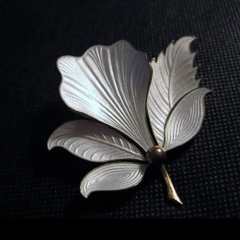 Selger vintage brosje i sølv og emalje. Brosjen er stemplet med Sterling, 925s, Made in Norway samt ankeret som Hans Myhre brukte som ansvarsstempel . Antar den er fra 50/60 tallet en gang. Brosjen er ca 6 cm.