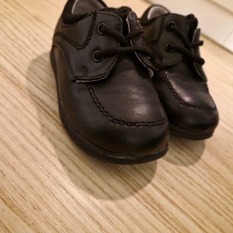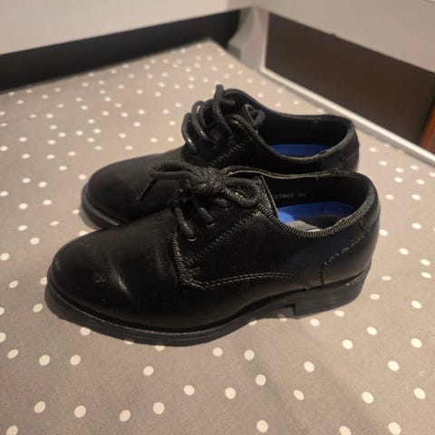 Sorte dressko til gutt fra Kennedysko. Noen bruksmerker på skotuppene, men har mye bruk igjen.