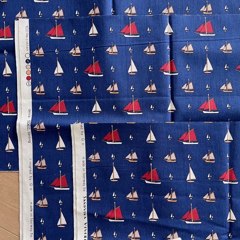 6 m gardinstoff, påtrykt mønster, frå 1960-talet. Akryl. Kr 600 + ev. porto. Eg bruker ikkje betalings-/ sendingsløysinga Fiks ferdig.